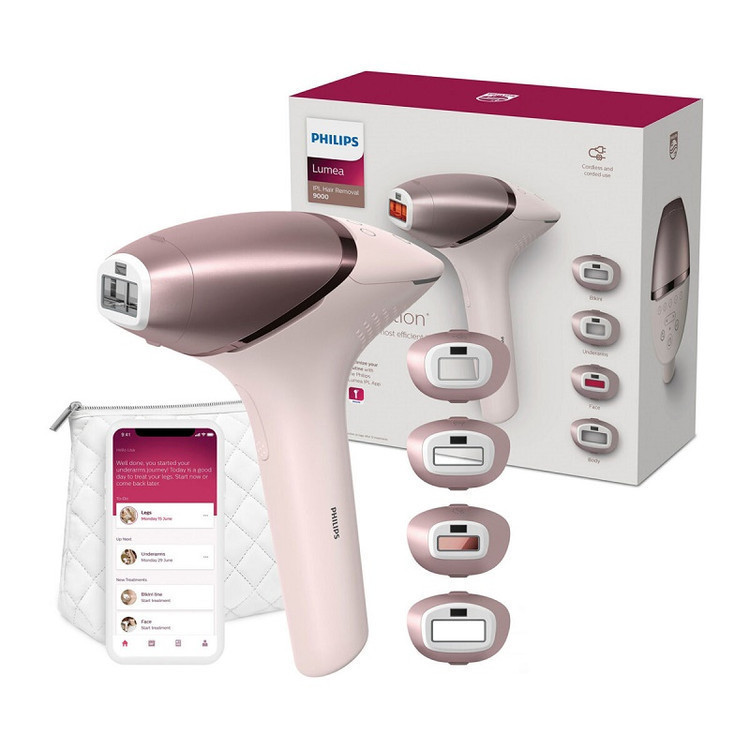 دستگاه لیزر فیلیپس لومیا سری 9000 شات نامحدود مدل Lumea BRI1958 مخصوص موهای زائد بدن با چهار سَری مخصوص ناحیه بیکینی، صورت، زیر بغل و بدن. مجهز به سنسور هوشمند تشخیص روشنایی پوست بوده و بر اساس آن شدت نور را تنظیم می کند. تا زمانی که سَری به شکل صحیح در موقعیت درست قرار نگیرد، دستگاه کار نمی کند تا از آسیب های احتمالی جلوگیری نماید. دارای شات نامحدودد نوری بوده و ظرف 12 جلسه می توانید نتایج محسوسی را مشاهده کنید. میزان رضایتمندی از دستگاه موبر خانگی فیلیپس بسیار بلا بوده و بدون عوارض جانبی است. تمام مراحل بالینی را طی کردن و تا 10 سال بر روی این وسیله آزمایش انجام گرفته است