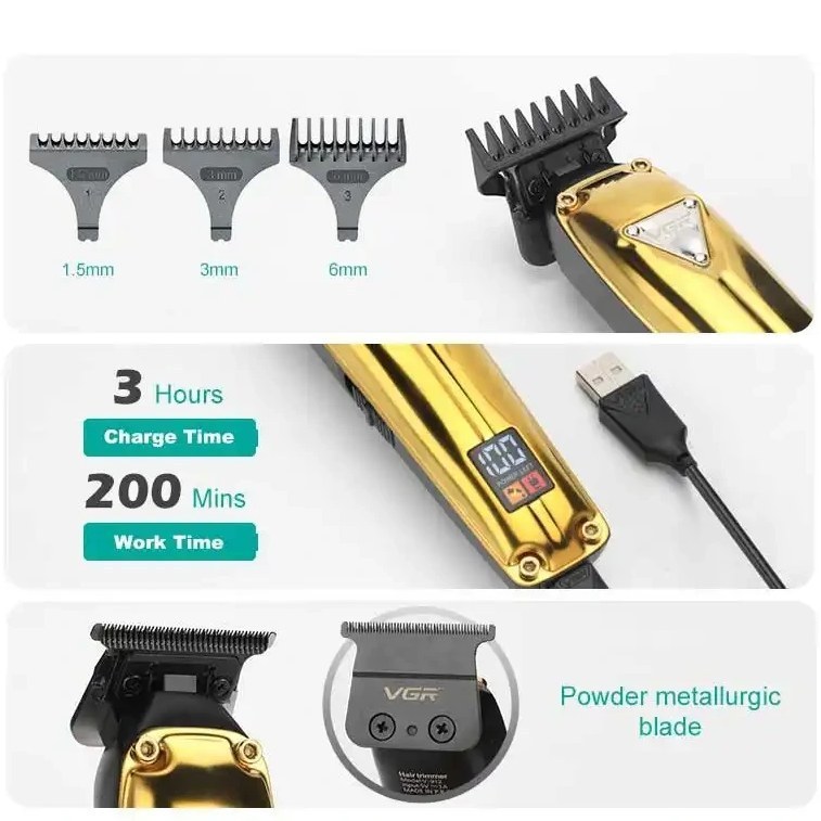 همچنین دارای 3 عدد شانه اصلاح از مواد با کیفیت در سایز های 1.5/3/6 میلی متر میباشد