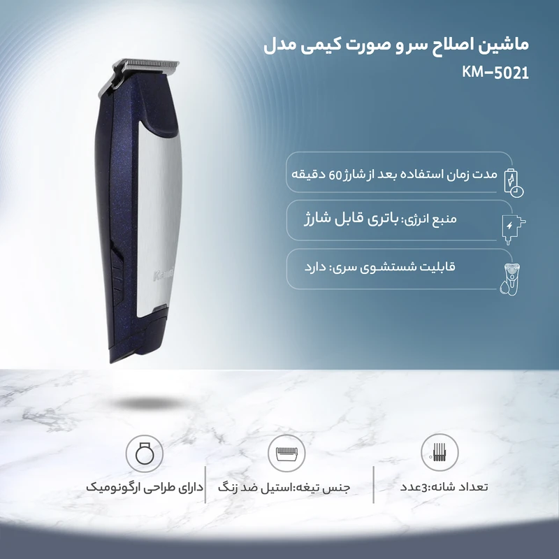 ماشین اصلاح کیمی KM-5021: آراستگی بینقص، در دستان شما! (فروش ویژه در وی جی آر مارکت)